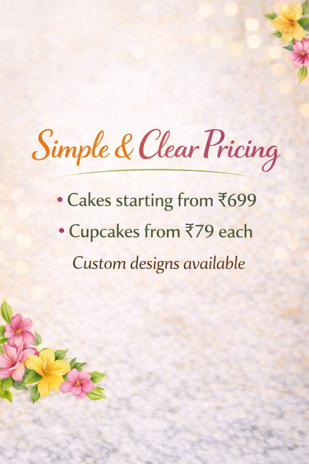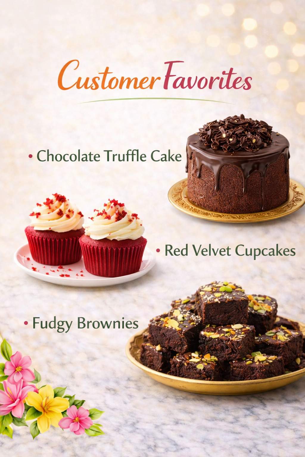 Made-to-order cakes for birthdays, anniversaries & celebrations.